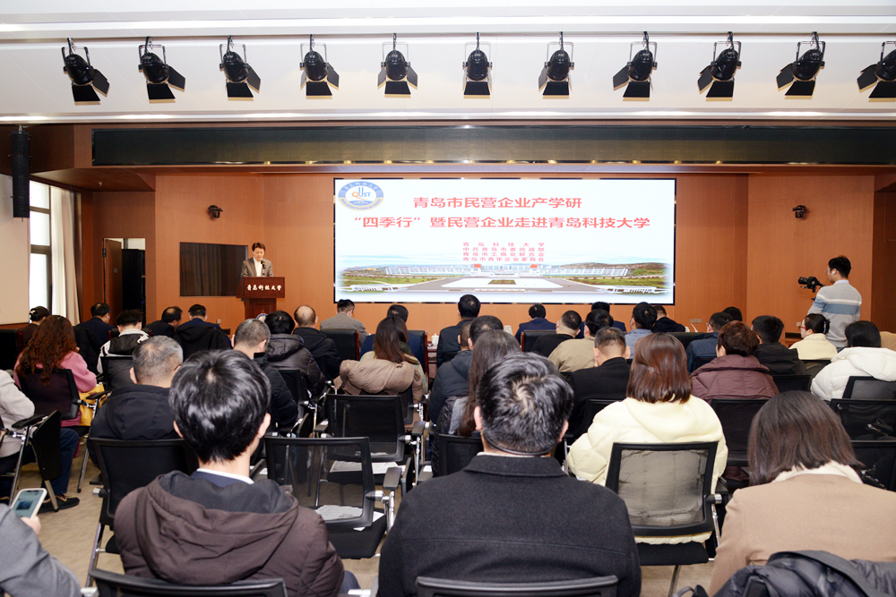 为深化产学研融合、精准对接产业需求,助力青岛民营经济高质量发展与新质生产力培育,近日,青岛市民营企业产学研“四季行”暨民营企业走进青岛科技大学活动举办。本次活动由青岛市委统战部、市工商联联合主办,青岛科技大学承办。青岛市委统战部副部长、市工商联党组书记刘传华,青岛科技大学党委常委、副校长吴明铂出席活动并讲话。来自全市橡胶、新材料等重点产业领域的民营企业家代表、青岛市青年企业家商会会员、青岛科技大学专家教授等约100人参加活动。