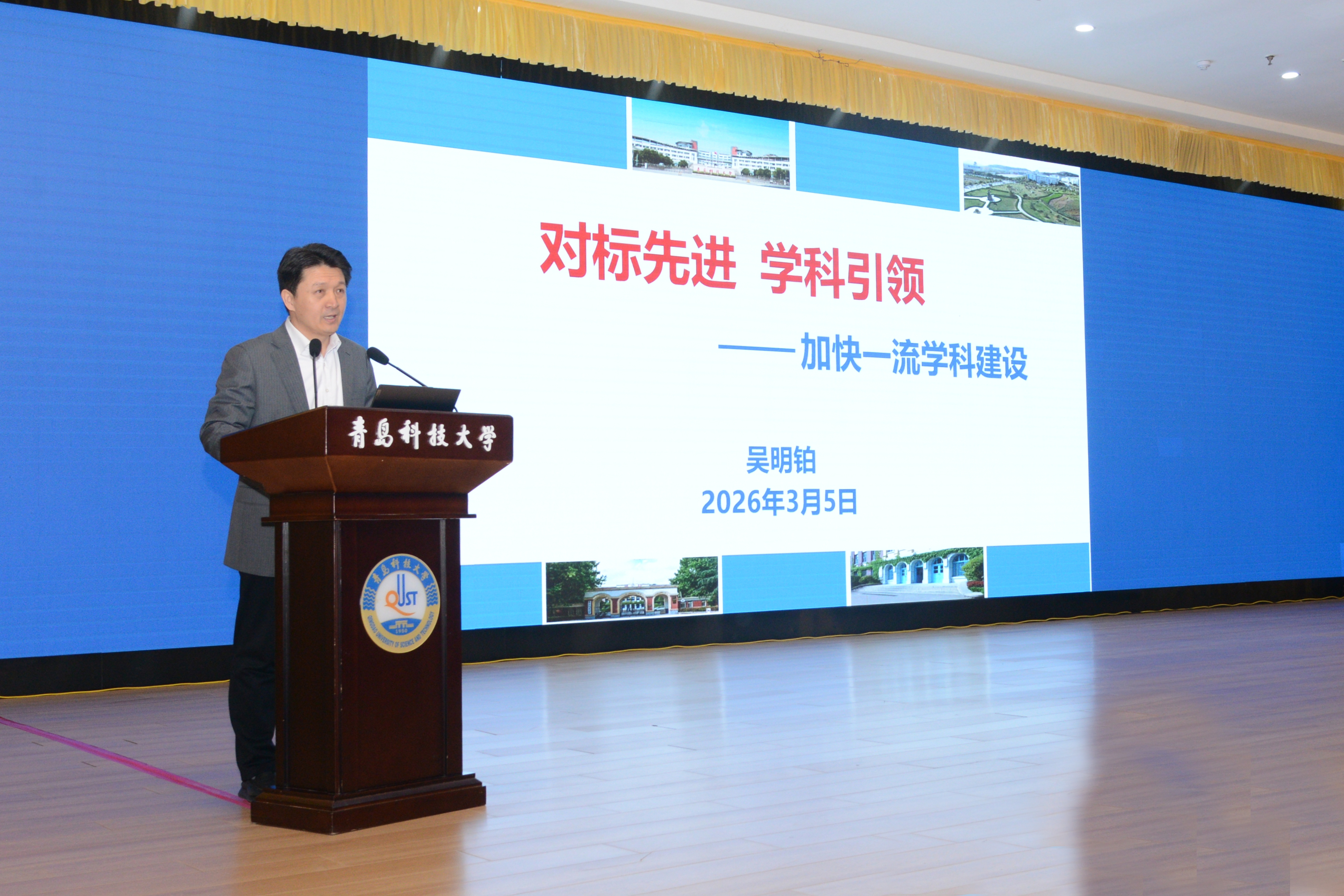 3月5日至6日,青岛科技大学2026年工作会议在崂山校区召开。学校党政领导班子全体成员出席会议。