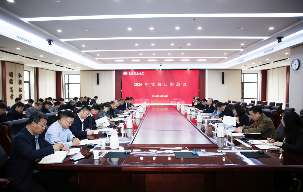 为深入贯彻落实习近平总书记关于党的建设的重要思想以及全国教育大会精神,结合学校深入开展树立和践行正确政绩观学习教育部署安排,3月30日上午,学校在崂山校区赛轮会议室召开2026年党务工作会议,统筹安排部署2026年重点工作任务。党委书记杨天梅出席会议并讲话。党委副书记沈文青主持会议。