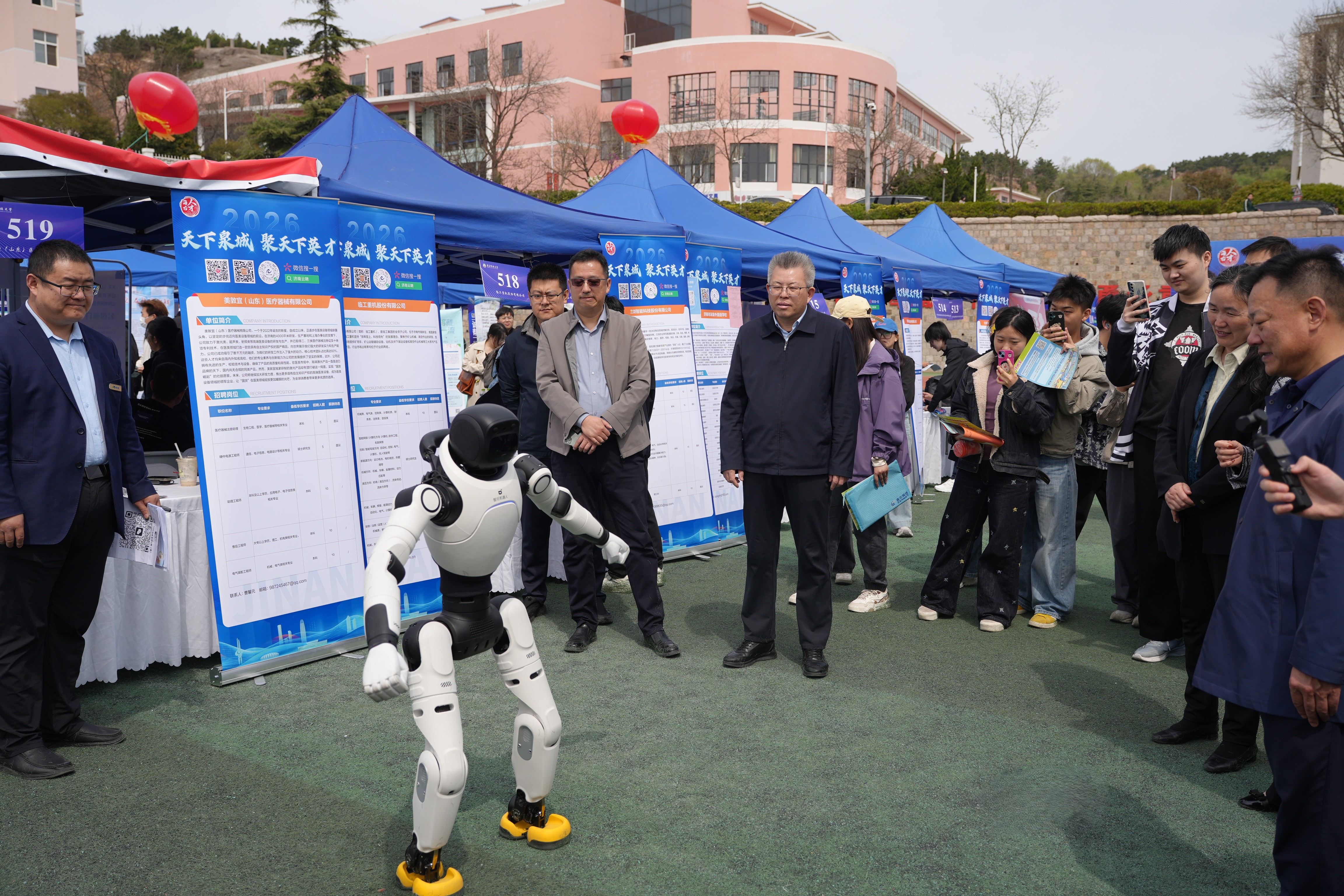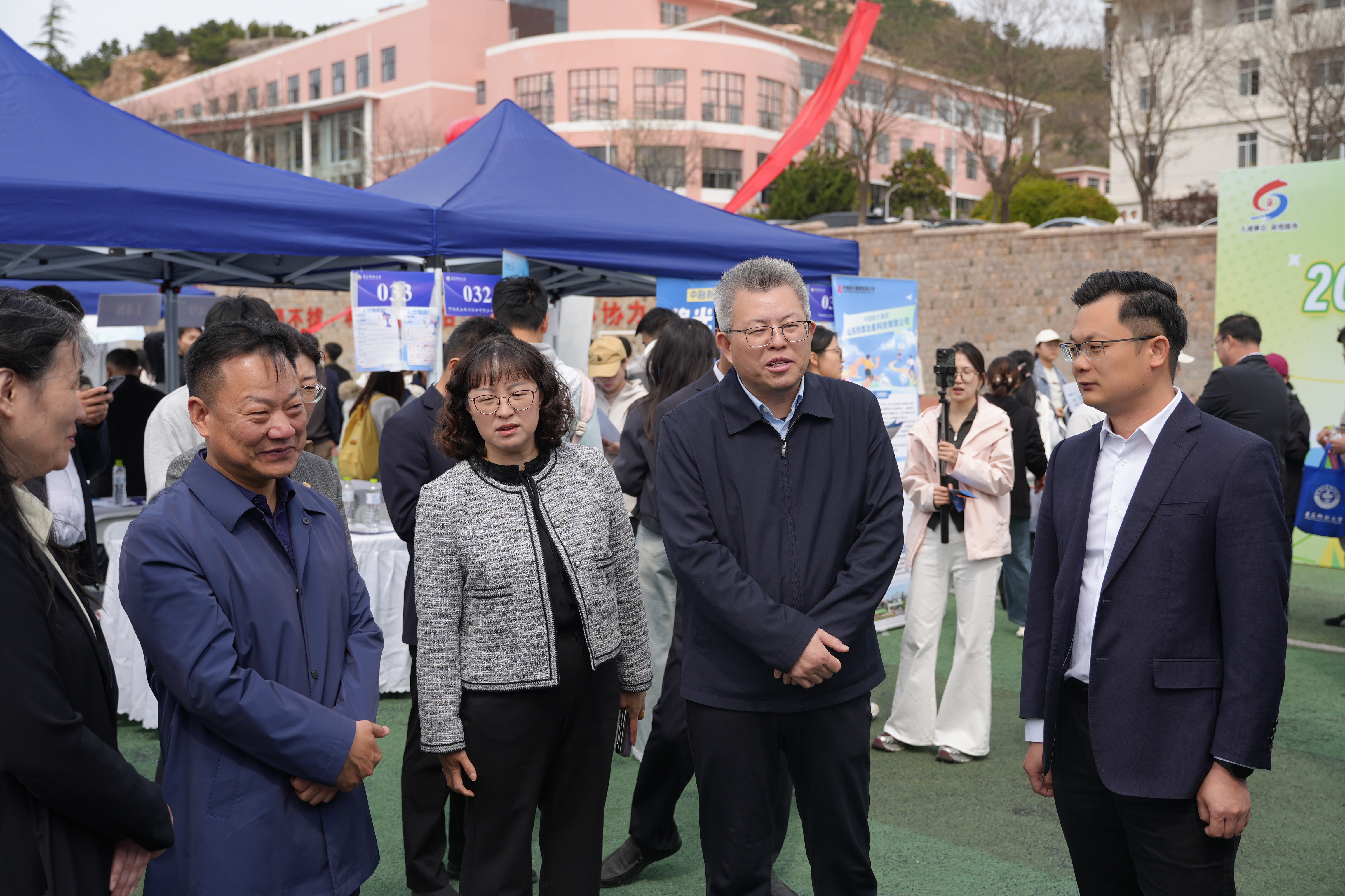 4月16日,青岛科技大学2026年春季大型双选会在崂山校区举行。山东省教育厅高校学生处副处长张健,青岛市委统战部副部长、市工商联党组书记刘传华,市工商联党组成员、副主席张宣付,青岛市公共就业和人才服务中心党委委员、副主任秦冬梅,学校党委书记杨天梅,党委常委、副校长王震深入现场调研指导。